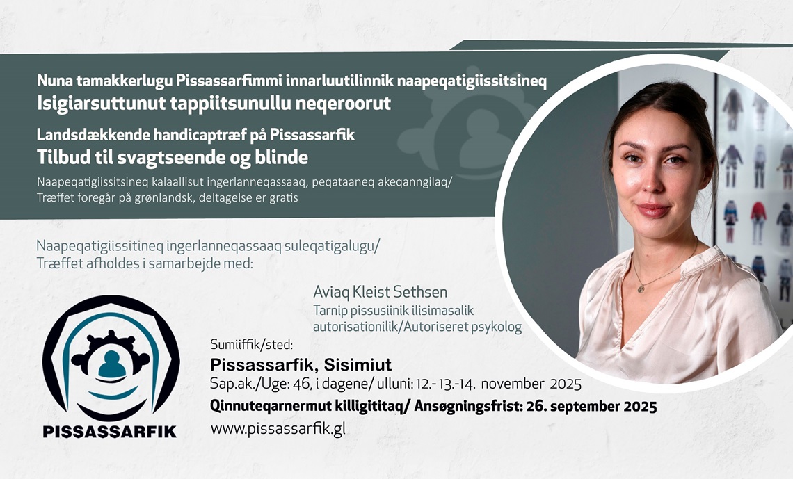 Træffet afholdes i samarbejde med Autoriseret psykolog Aviaq Kleist Sethsen og foregår på grønlandsk.